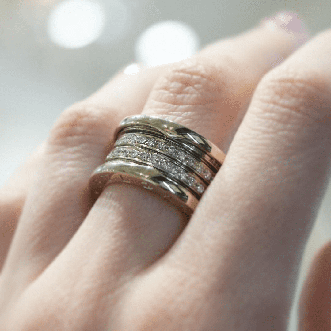 В магазине “Диамант” предлагают качественные реплики популярных ювелирных брендов. Например, в 2024 году самыми продаваемыми моделями были кольца в стиле “Bulgari”, отличающиеся массивностью, сочетанием разных цветов золота и большим количеством мелких вставок. На изделия можно заказать нанесение любой гравировки.