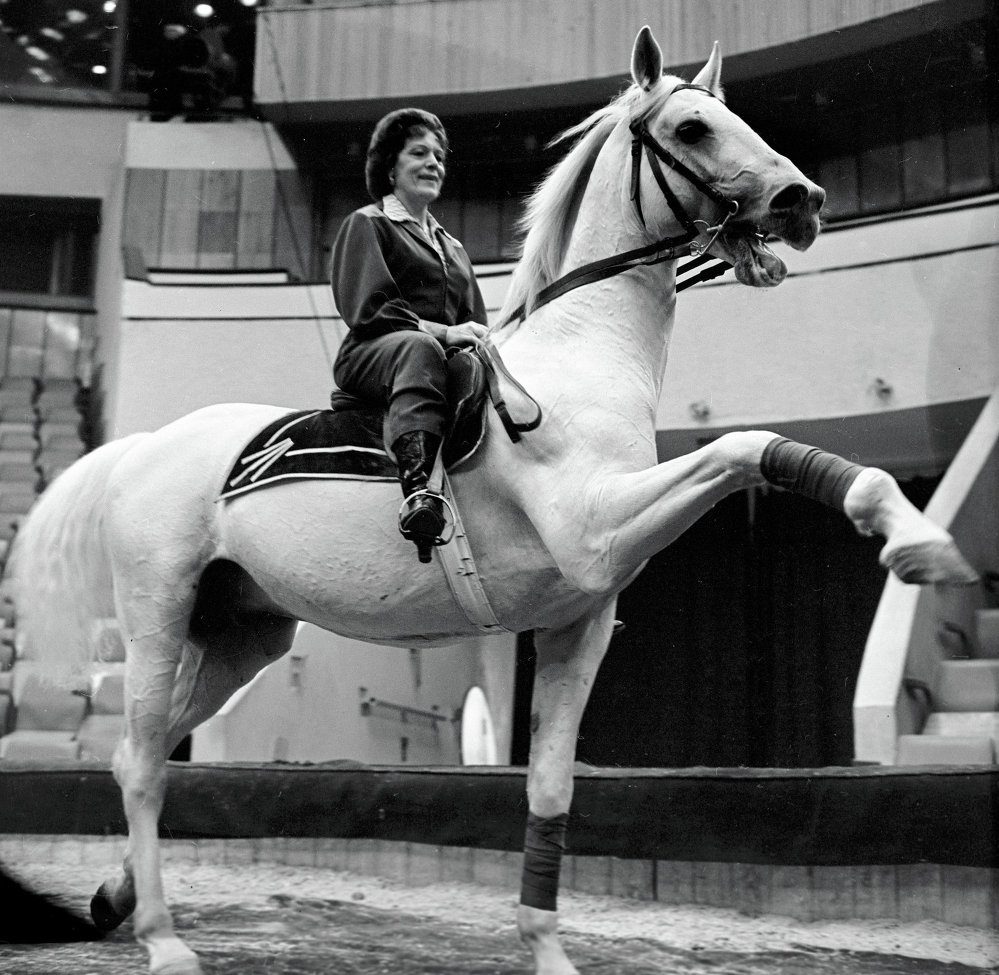 Но Бугримова не ограничивалась только воздушной гимнастикой. Параллельно она увлеклась конным спортом и решила включить элементы верховой езды в свой цирковой репертуар. Так родился новый номер – “Высшая школа верховой езды”. Это было не просто демонстрация фигурной езды: Бугримова управляла лошадьми с исключительным мастерством, заставляя их исполнять сложные элементы под музыку. Работа с лошадьми оказалась для Ирины особенно близка. Она изучала их повадки, разрабатывала собственные методы тренировки и вскоре стала одной из лучших цирковых наездниц. Этот опыт впоследствии очень помог Ирине, когда она решила перейти к работе с хищниками. Ведь управление львами требовало того же сочетания силы, уверенности и тонкого понимания психологии животных.