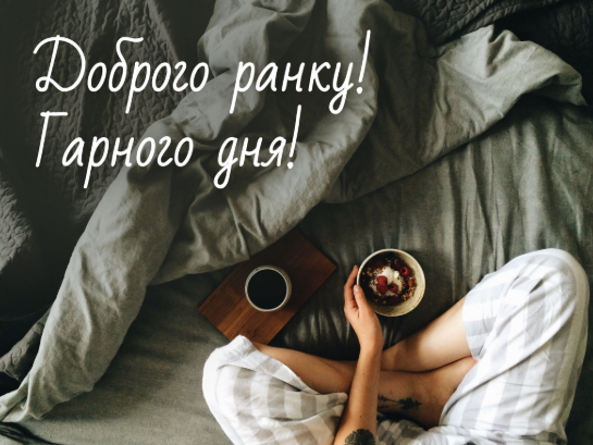 - З фокусом на здоров’я: «Доброго ранку! Бажаю бадьорості, гарного самопочуття та заряду енергії до самого вечора! Бережи себе!»