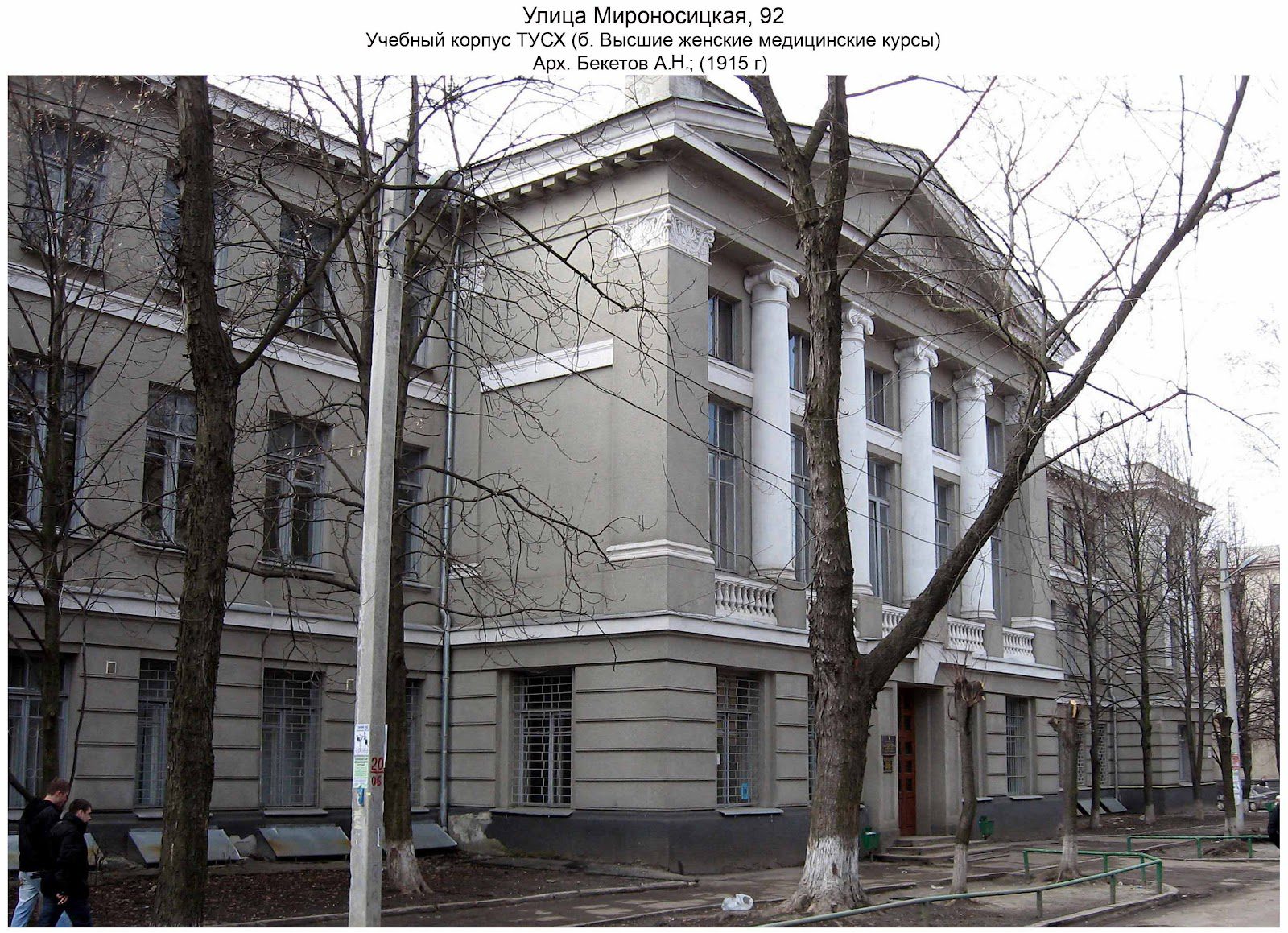 Але найзначнішим кроком стало створення Вищих жіночих курсів, які почали діяти при товаристві у 1910 роках. Курси проводили в одному із приміщень, які були орендовані товариством у центрі міста неподалік Харківського Імператорського університету. Це давало змогу залучати до викладання професуру з цього вишу. Іноді запрошували лекторів із Петербурга та Києва, наприклад, на заняття з права.